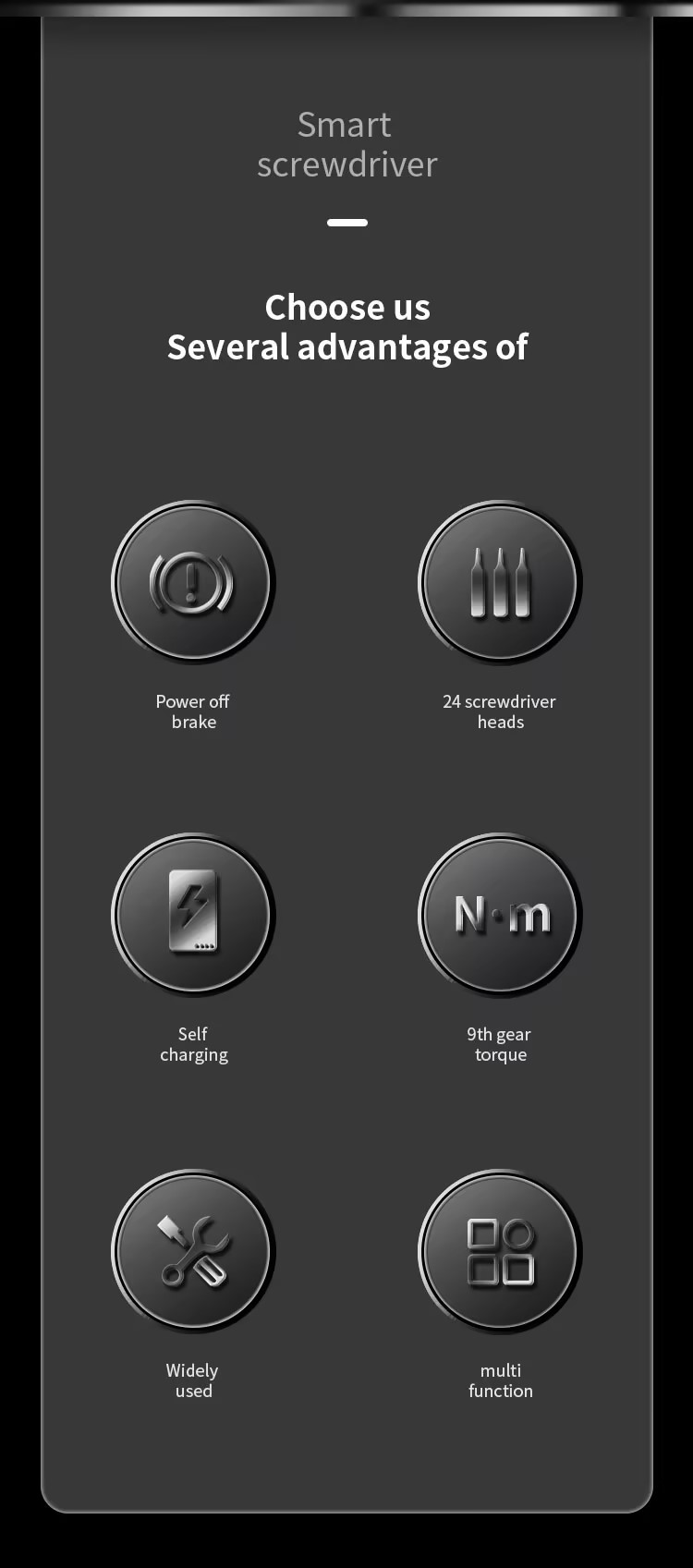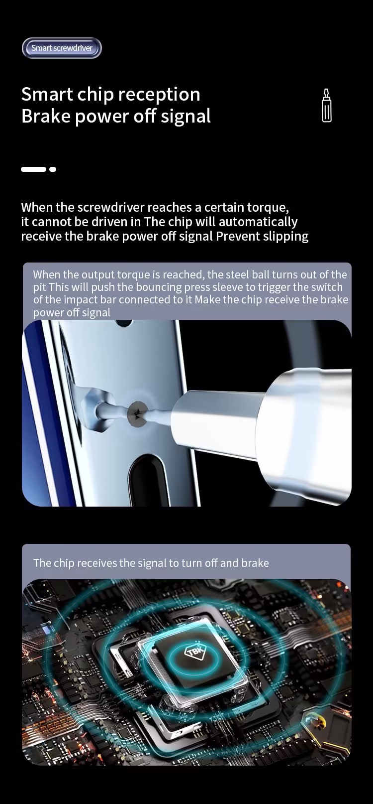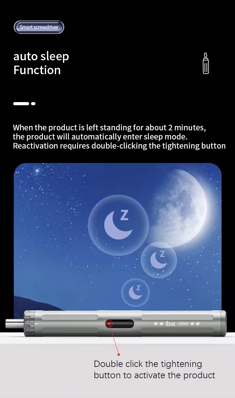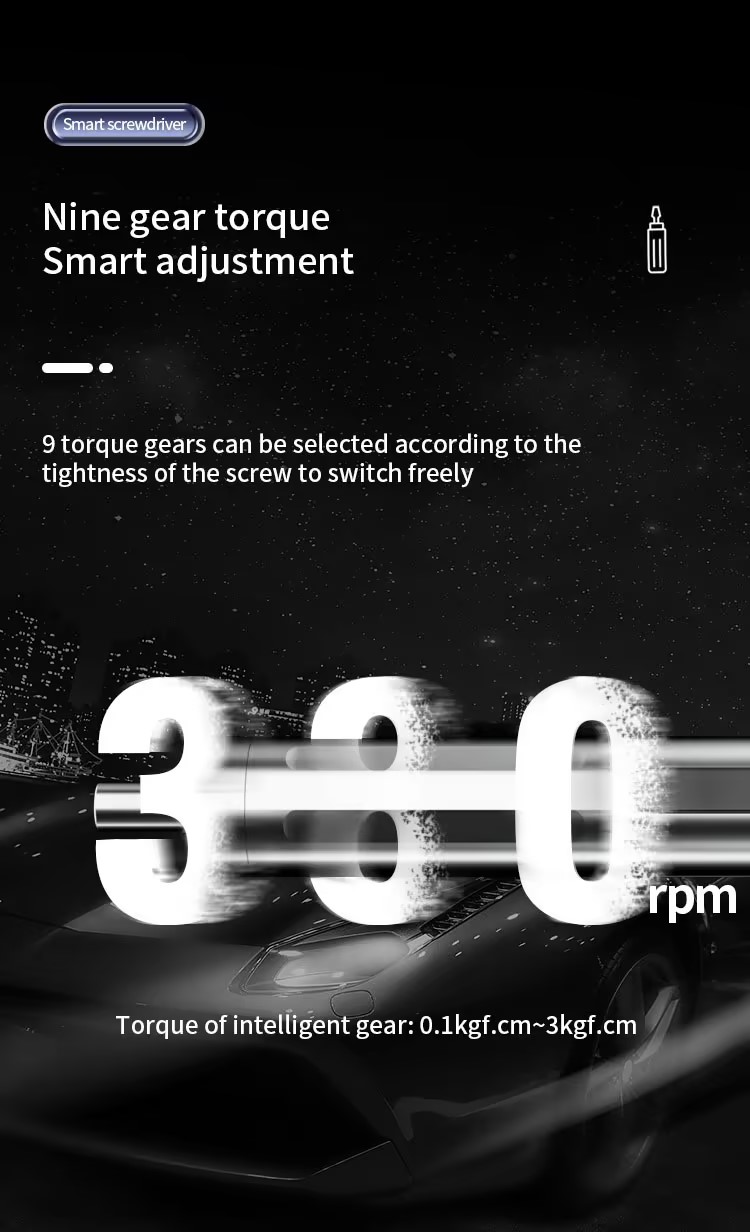 1.Adjustable torque setting 0.1-3KG, 8 speed torque modes