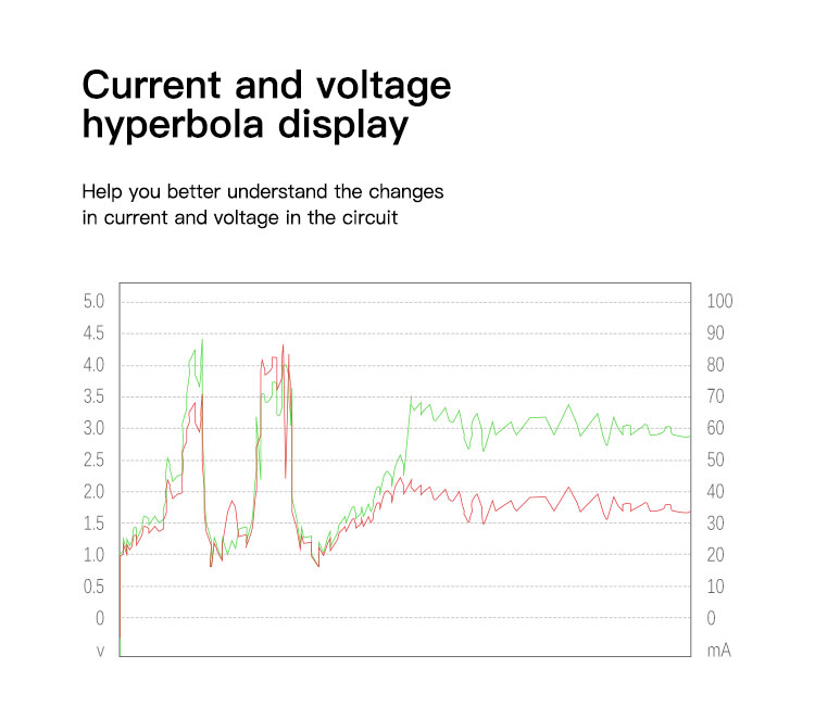 Real-time Waveform Graph: The color screen plots live voltage and current curves to help analyze circuit behavior.