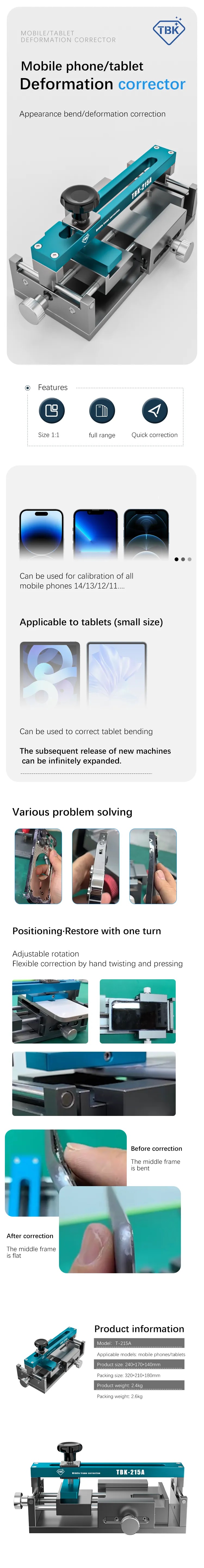 TBK 215A TBK-215A Cell Phone Middle Frame Repair Fixture Tool For Smart phone pad Tablet Deformation and Bending Correction Repair Instrument Tool