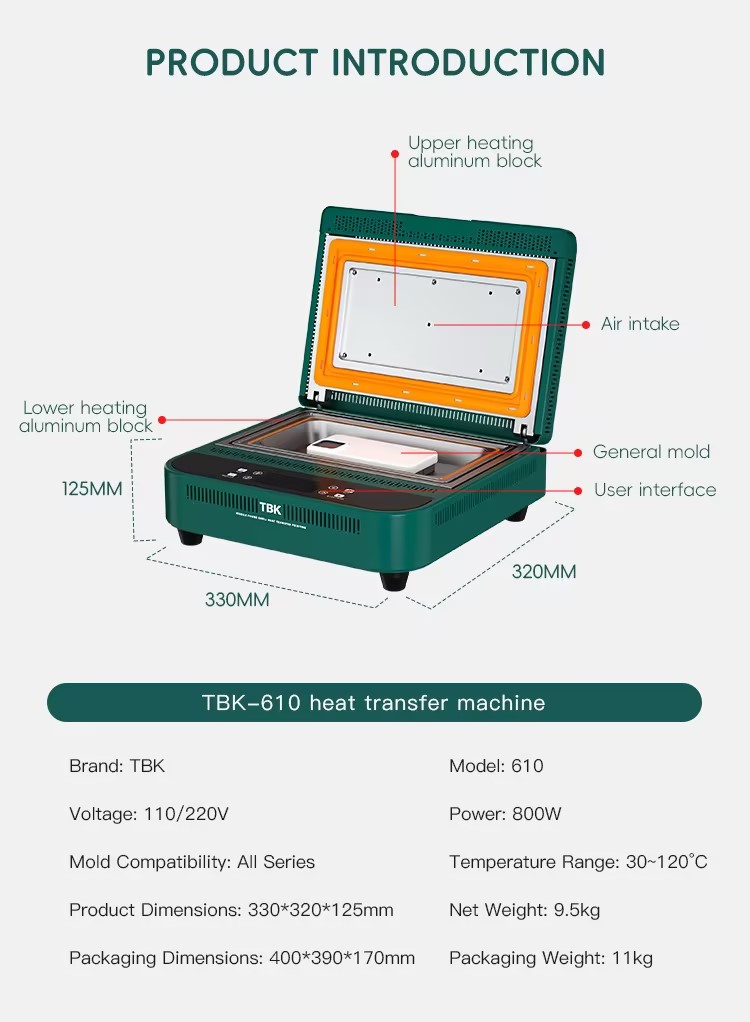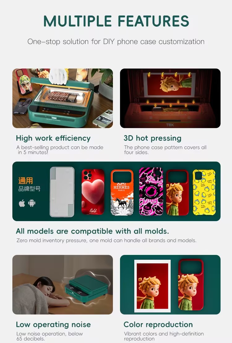 TBK-610 Vacuum Heat Press Machine for Custom Phone Cases | 5-Minute 3D Panoramic Printer for Repair Shops & Sellers