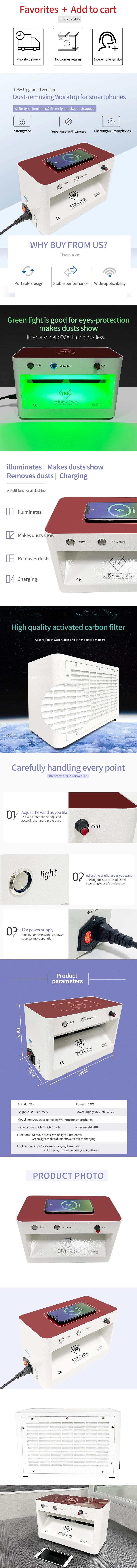 TBK-705A Dust Showcase Mobile Phone Dirt Removal Workbench LED Scratch Crack Detection Cleaning Bench