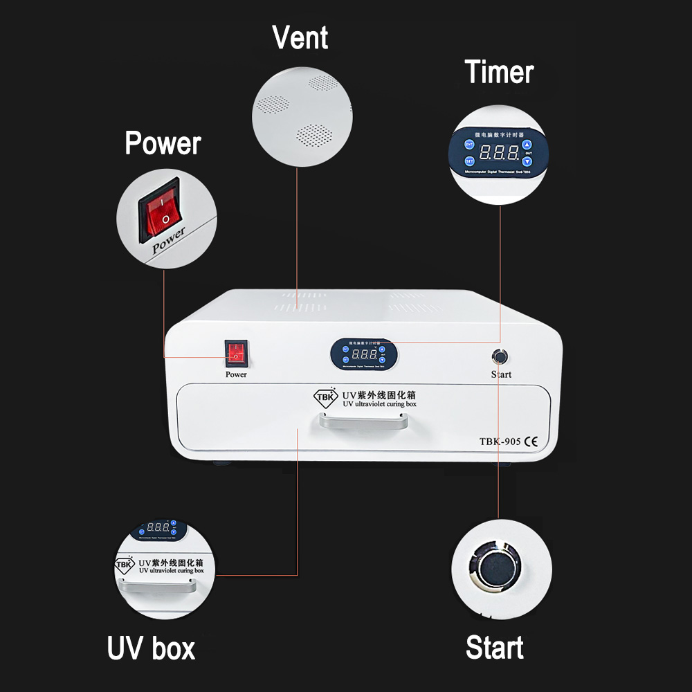 TBK-905 UV Ultraviolet Curing Box For Curved Screen Drying Display 80pcs LED OCA LOCA Adhesive Glue Repair Tool